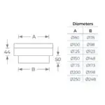Available in Stainless and black finishes, for 80mm-200mm internal diameters.